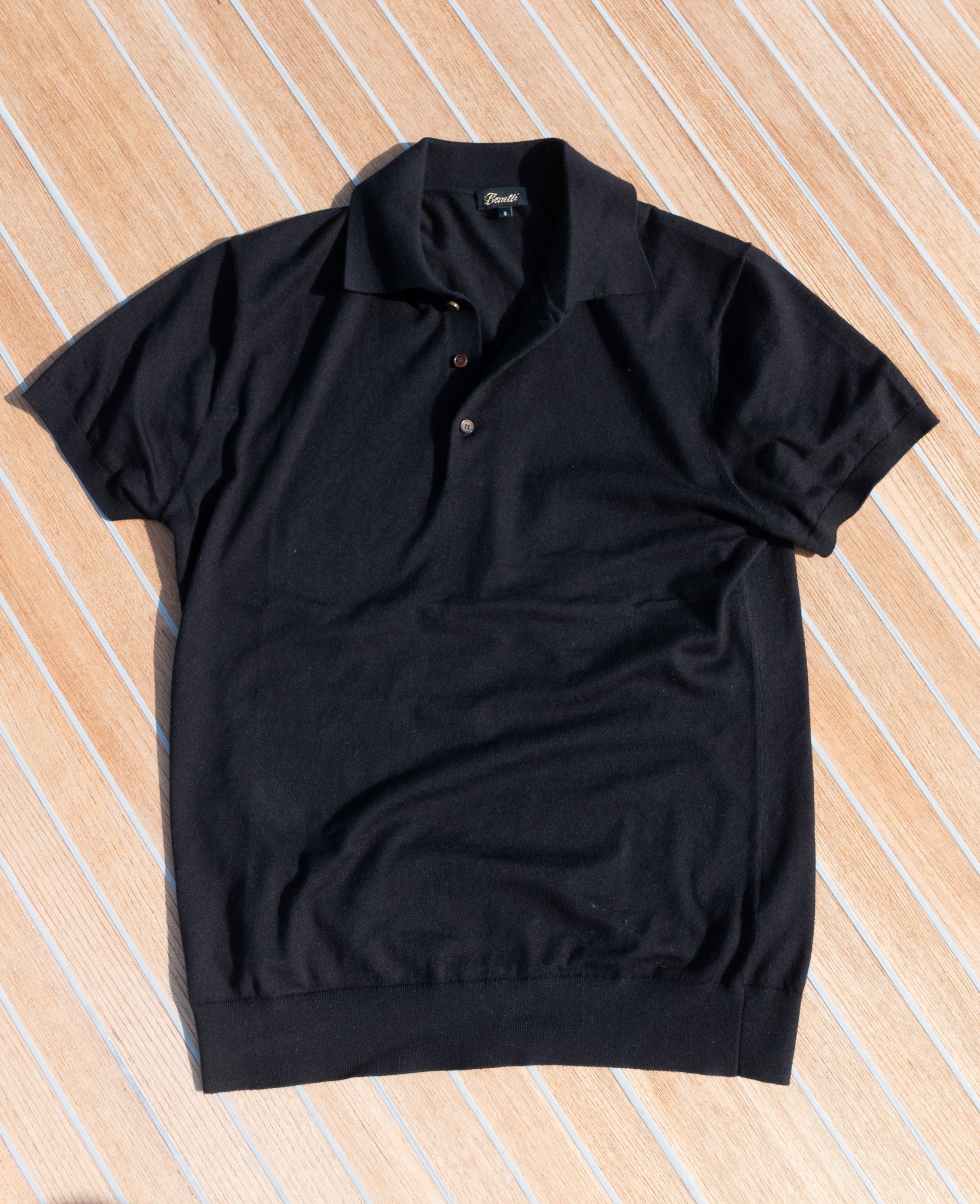 Introducing our Cashmere Silk Cotton Blend Polo. The tapered, European tailored fit exudes sophistication, while the top quality blend of cashmere, silk, and cotton promises unparalleled comfort. Perfect for all your spring and summer occasions, whether it be a hot weather getaway or a day by the Mediterranean coast.